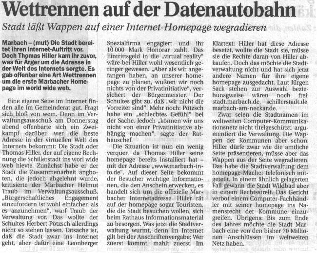 Ludwigsburger Kreiszeitung 3.7.1999         zurück